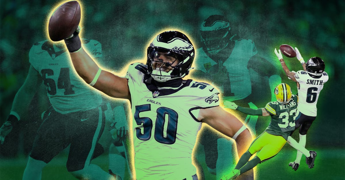 Eagles Defensive Line: We saw big games across the defensive line, including pressures from Moro Ojomo, sacks from Nolan Smith and Jalyx Hunt, and even a savvy play by Brandon Graham on a trick jet sweep play by Packers wide receiver Savion Williams. Somewhere, Vic Fangio is crying tears of joy.