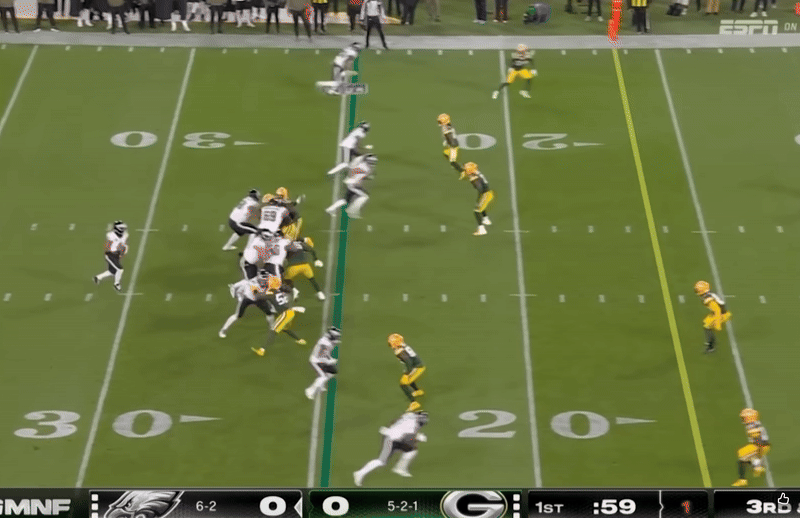 Credit to Jeff Hafley (aka a man who most likely doesn’t know what it feels like to smile) and the Packers defense. Micah Parsons was inevitable, affecting every offensive play he stood across. His sheer presence shifted the course of the Eagles’ offense like the moons of Jupiter.