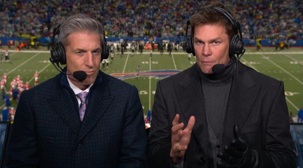 Tom Brady’s Glove: Tom Brady does his best to act like a real human person as a broadcaster and not some sort of robot-vampire hybrid. He failed in this one by having only one glove on when the camera panned to him and Kevin Burkhardt in the booth. Sources say Brady was paying homage to Michael Jackson as he just listened to Thriller for the first time before the game. Brady also at one point called Brandin Cooks “cookie” and referred to Josh Allen as the Bills’ “big booty quarterback.” I wonder if, when he powers down at night in his robot fueling station if he thinks to himself, “man, I really killed it out there today.”