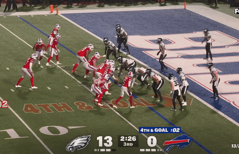 With 11 minutes left in the fourth quarter, Buffalo went on an 11-play drive that lasted over 5 minutes. They used a mix of their potent running game and timely third-down conversions to work their way down the field. With a little over 5 minutes remaining, Allen capped off the drive with a QB sneak, giving Buffalo their first score of the game. But Jalen Carter rose to block the extra point to keep the score at 13-6.