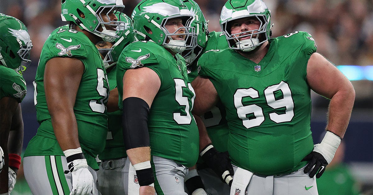 Philly’s offensive line is looking for a bounce-back performance after a down year, while also learning an entirely new scheme. On top of that, a long-time strength suddenly has some big question marks. The biggest of all is their overall health. Last year, the Eagles’ offensive line missed a total of 14 games (8 of those by Lane Johnson and another 3 by Cam Jurgens).